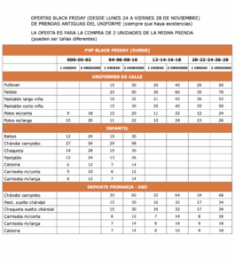 La semana del 24 al 28 de noviembre es la semana del Black Friday y por ello os planteamos unas ofertas para poder comprar los uniformes antiguos que tenemos en stock.